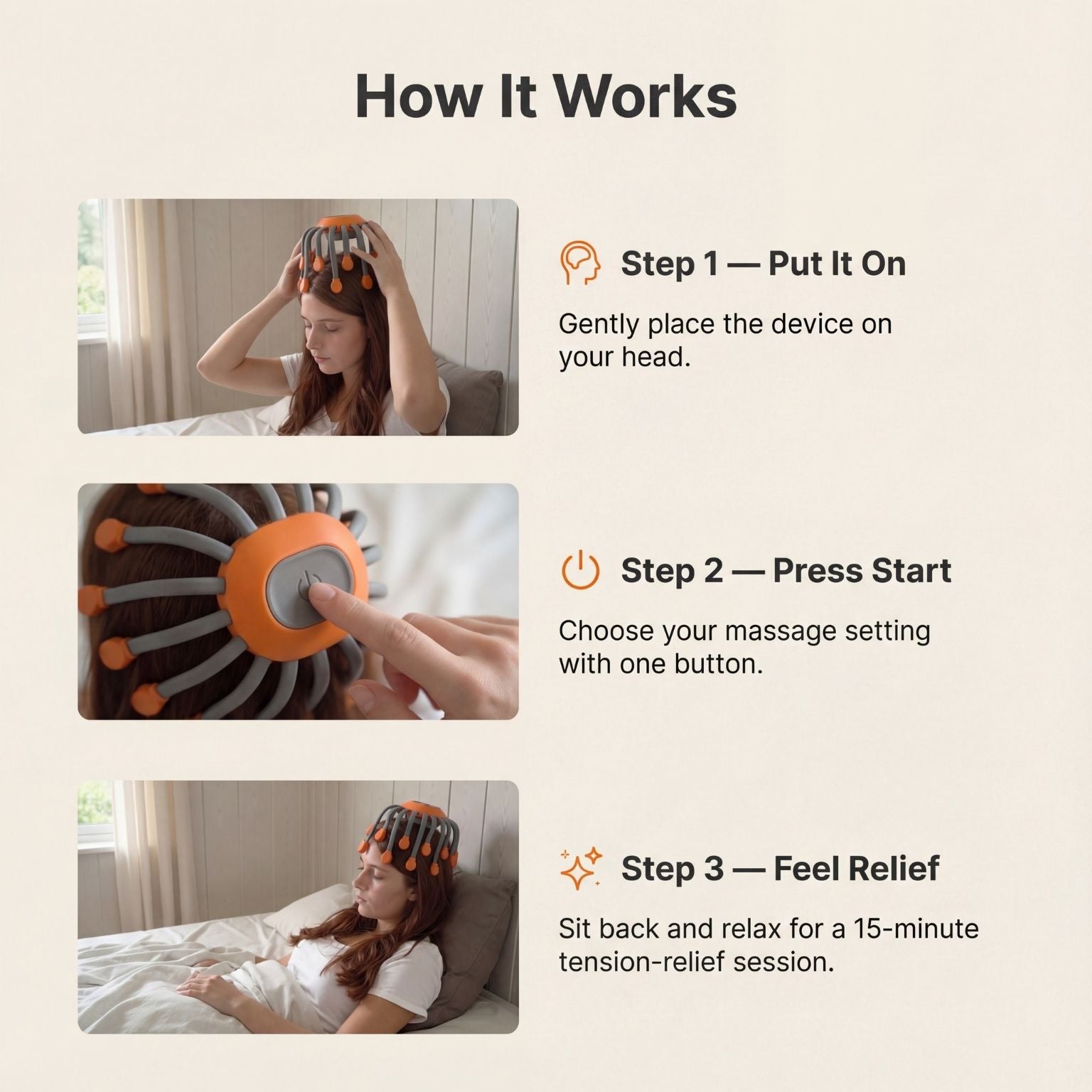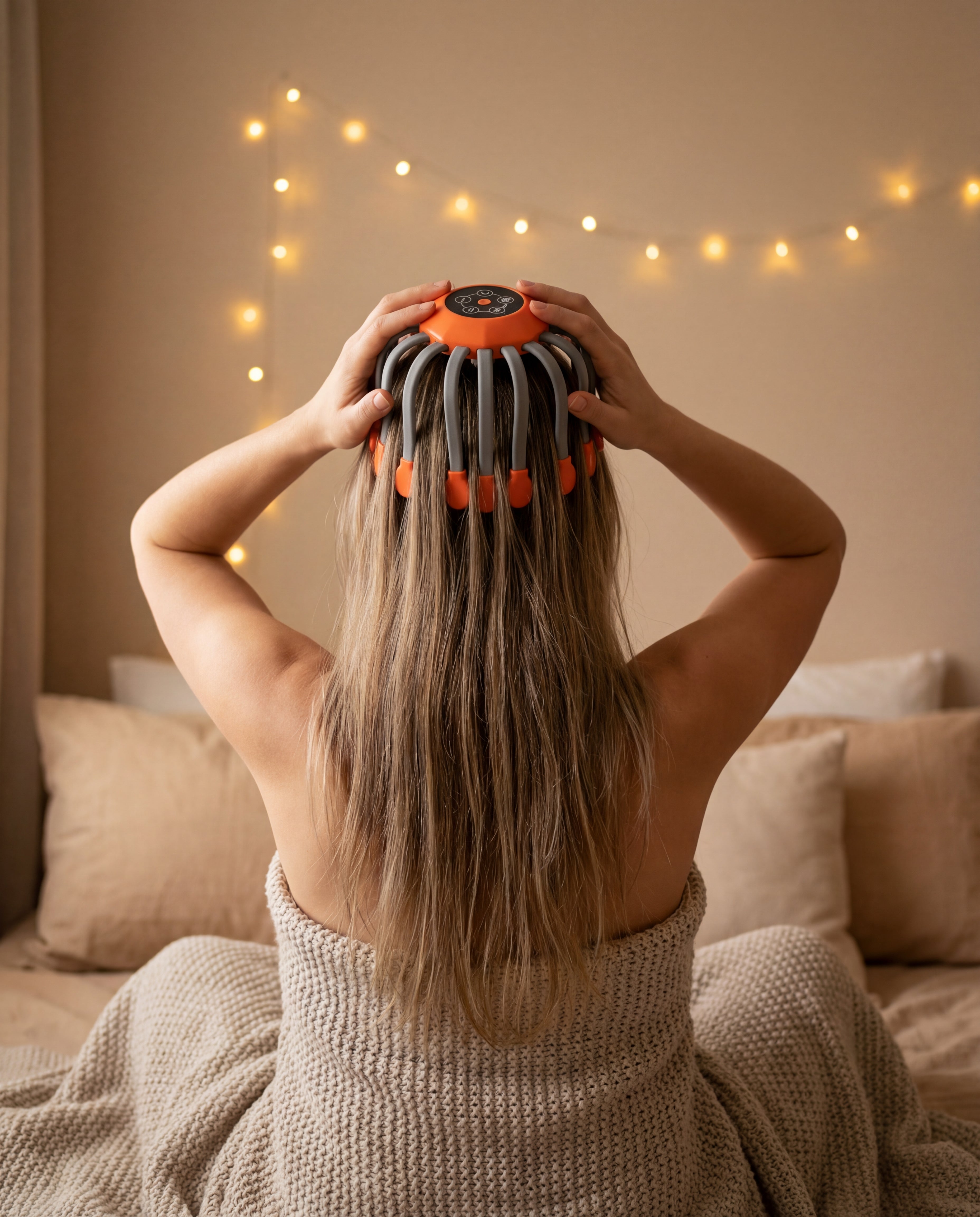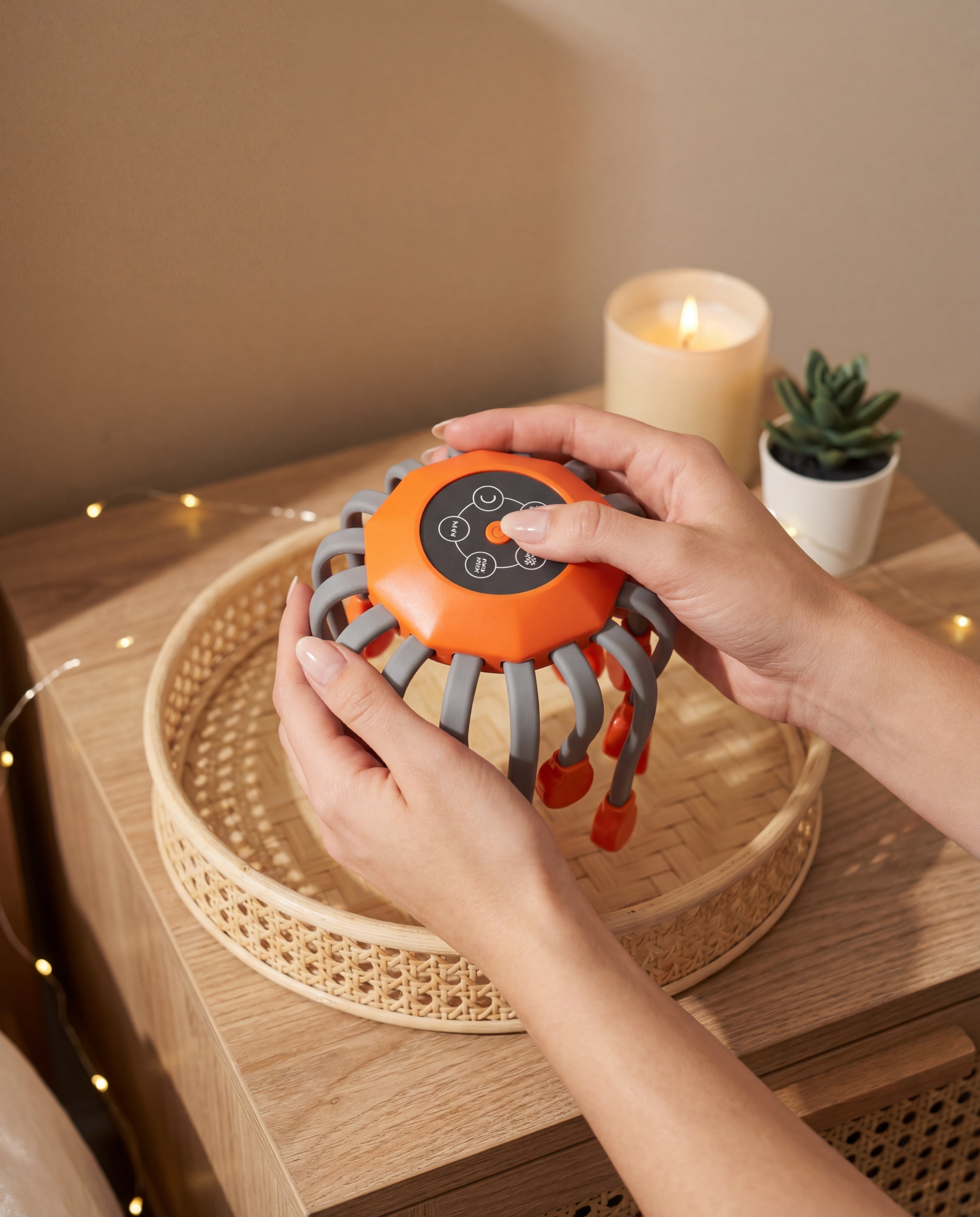 The Ovia Head Massager features flexible massage arms that automatically adjust to any head shape or size — ensuring a perfect, comfortable fit every time.