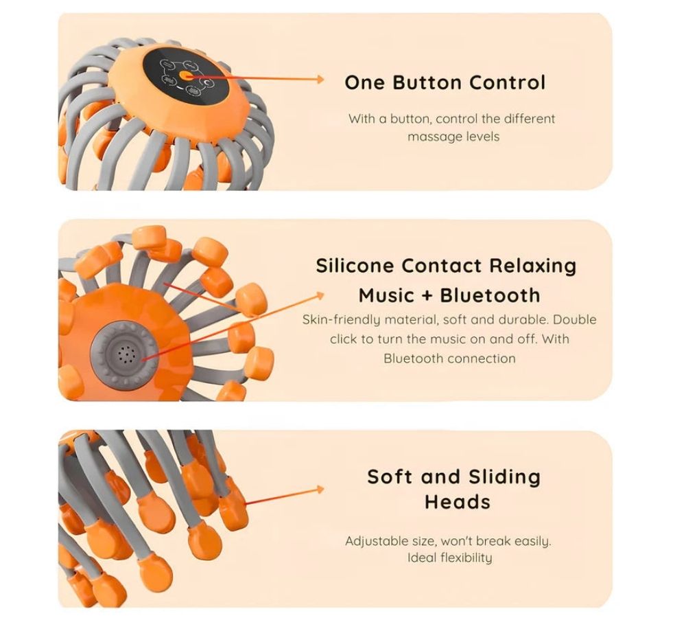 Even better — the Ovia Head Massager features built-in Bluetooth, allowing you to stream your favorite playlists, ambient sounds, or guided meditations while you relax. Pair your phone once, press play, and let the calm take over.